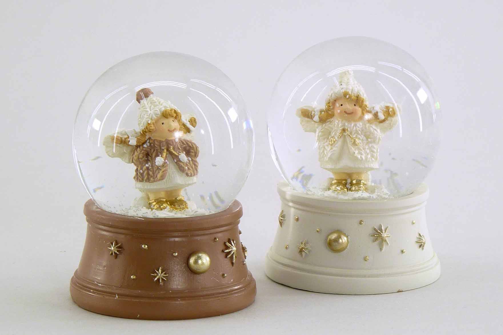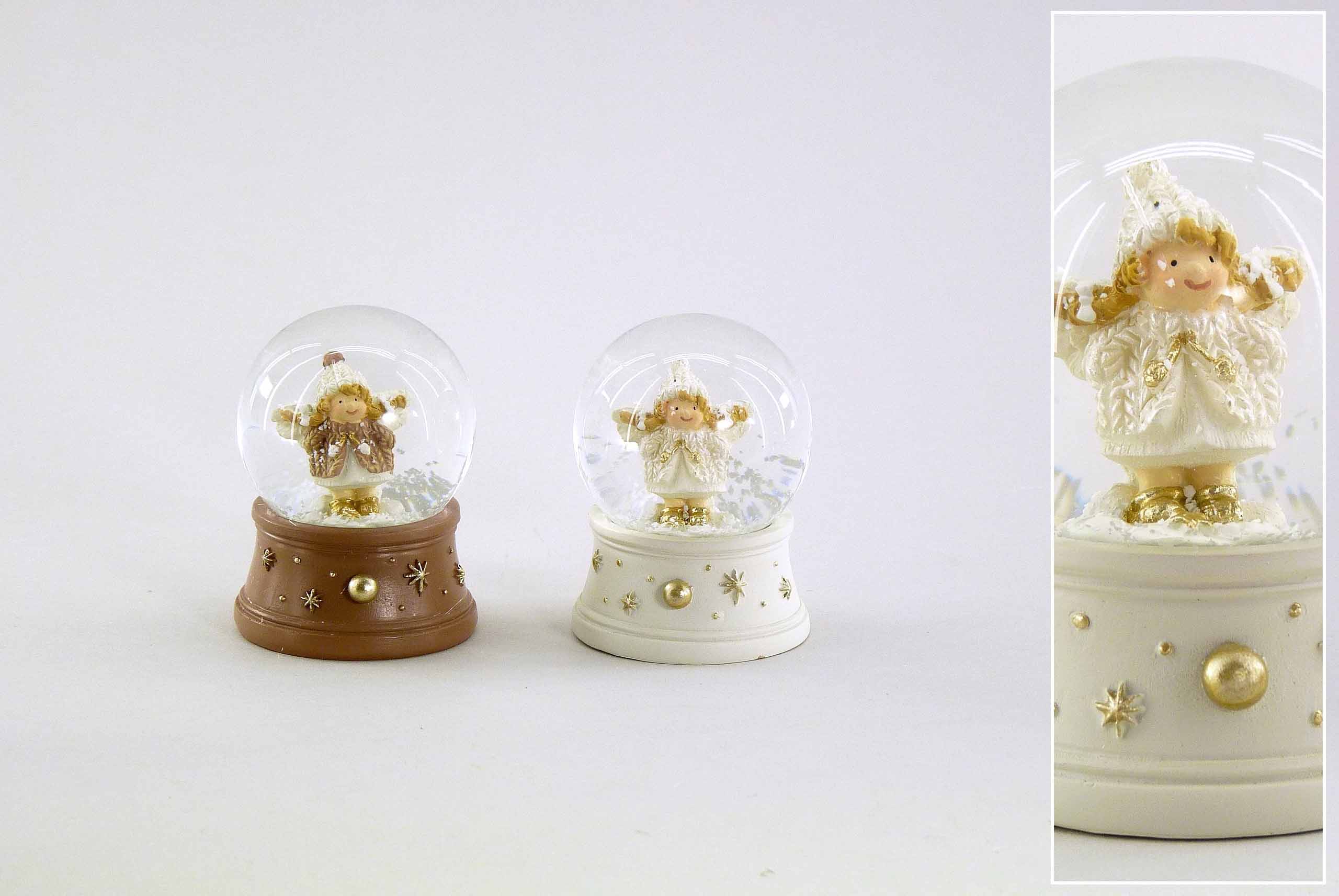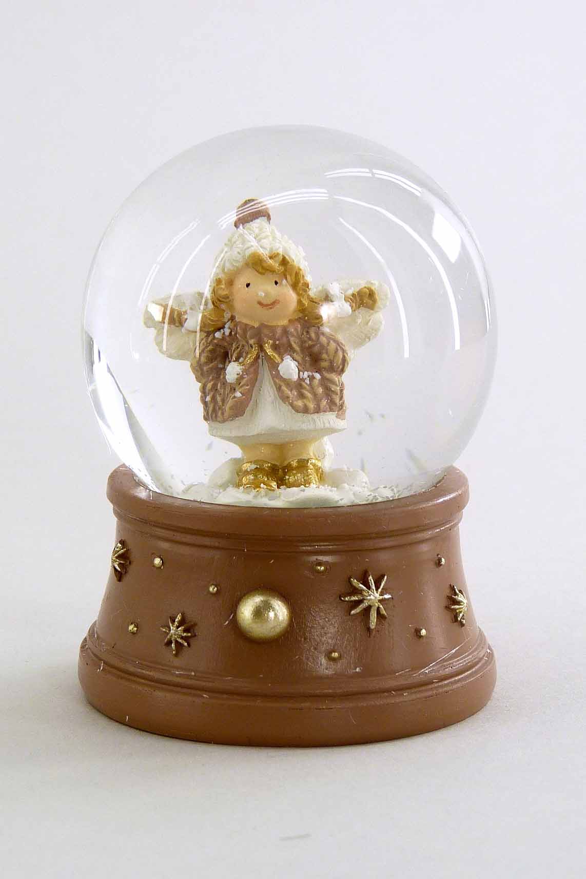 Poly-Schneekugel ''Winterengel'' creme/braun-gold sort. ø4,5 H6,5cm