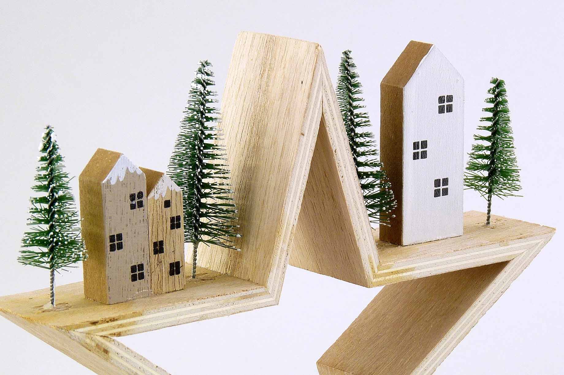 Holz-Winterstadt auf Stern grau-weiß-braun H18,5 B19,5cm