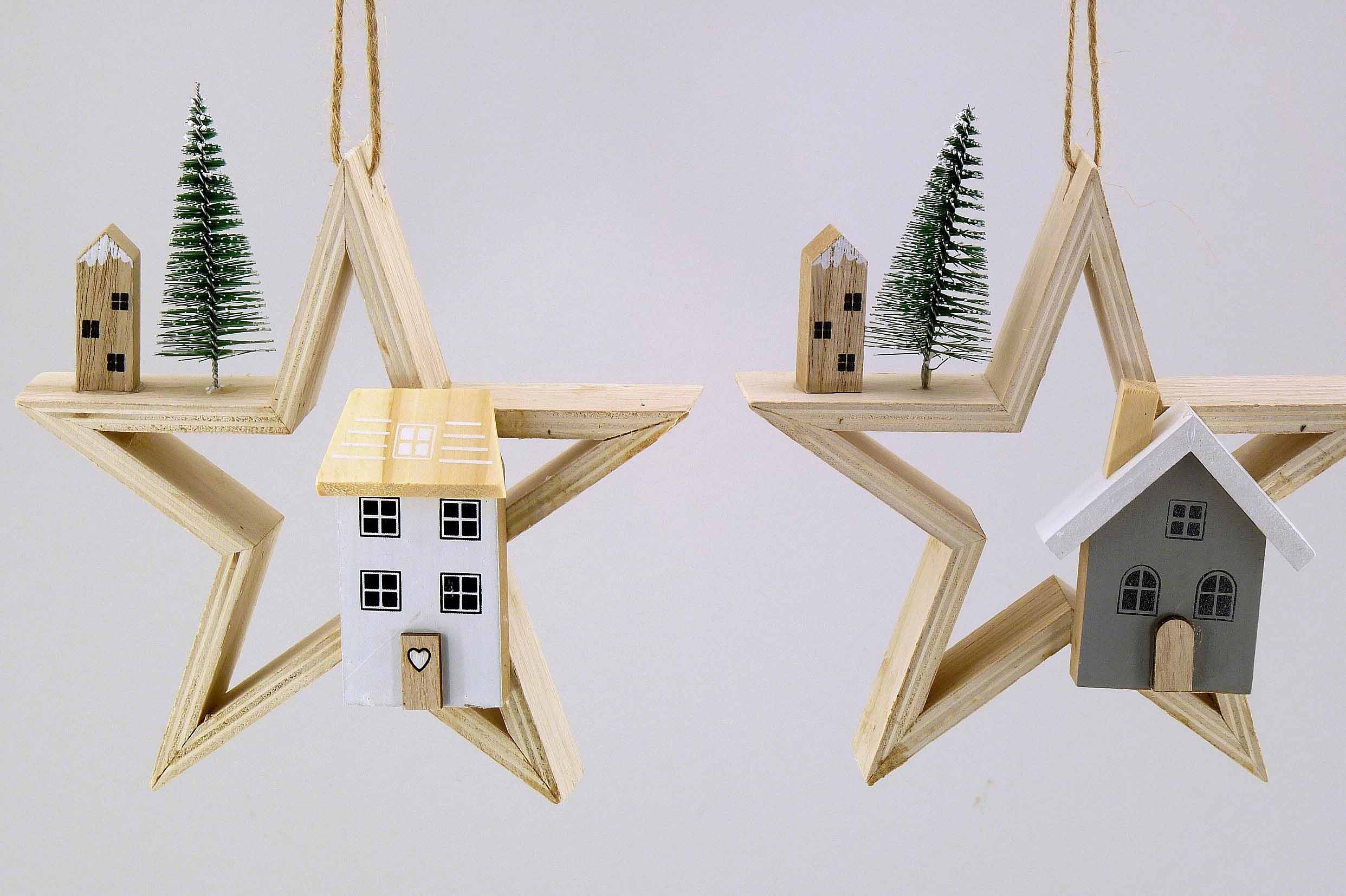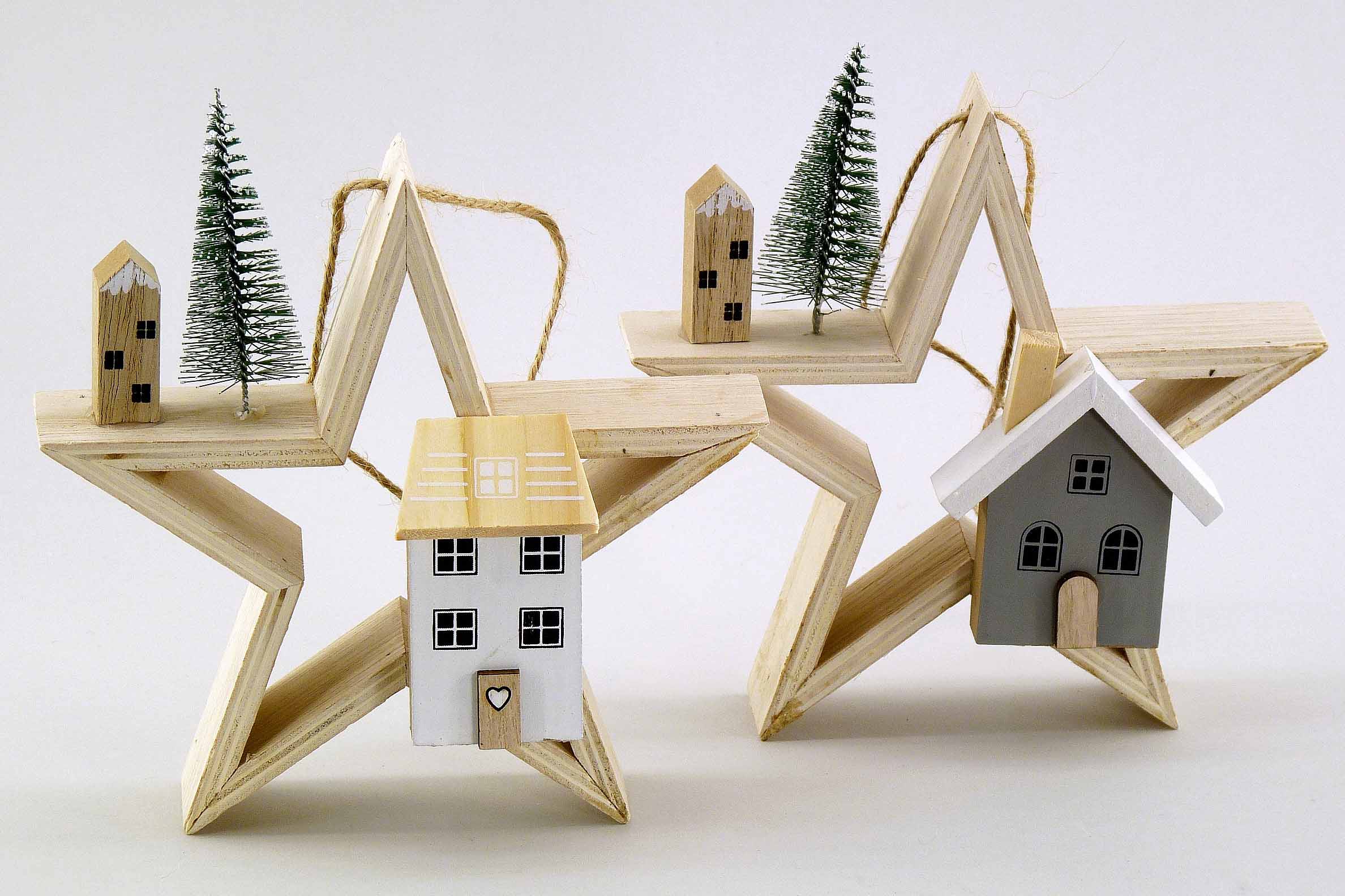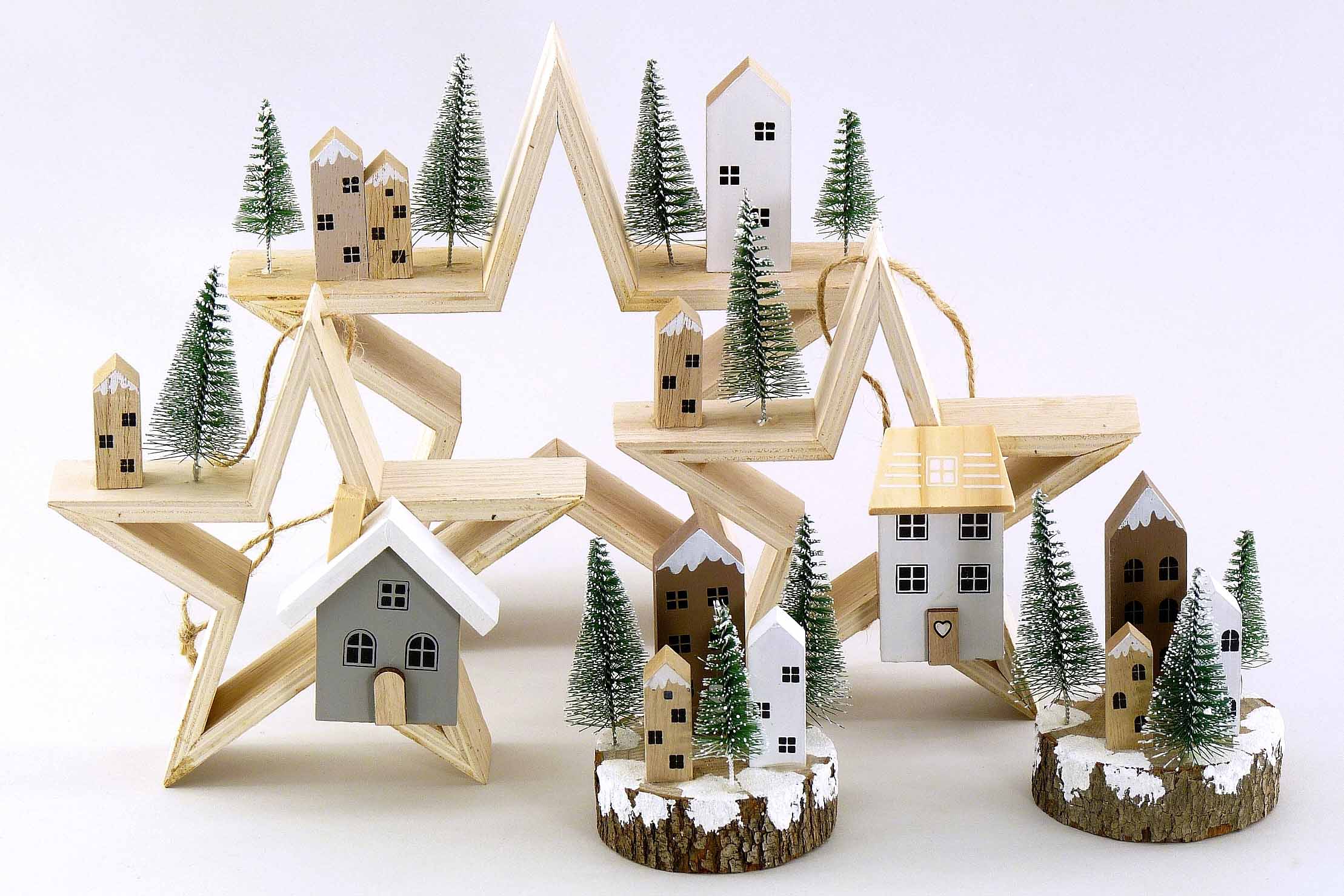 Holz-Winterstadt auf Stern hgd. grau-weiß-braun ø15cm