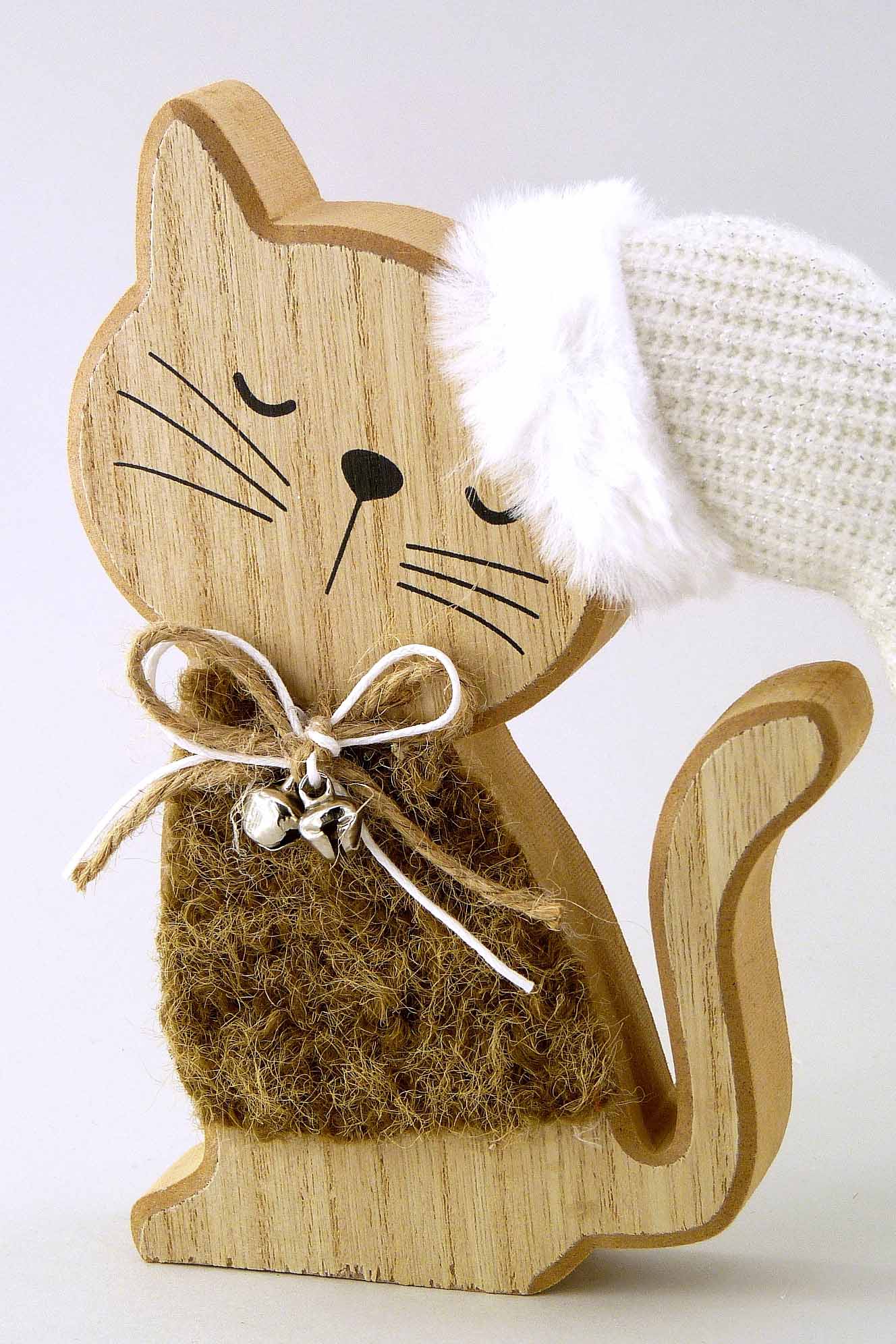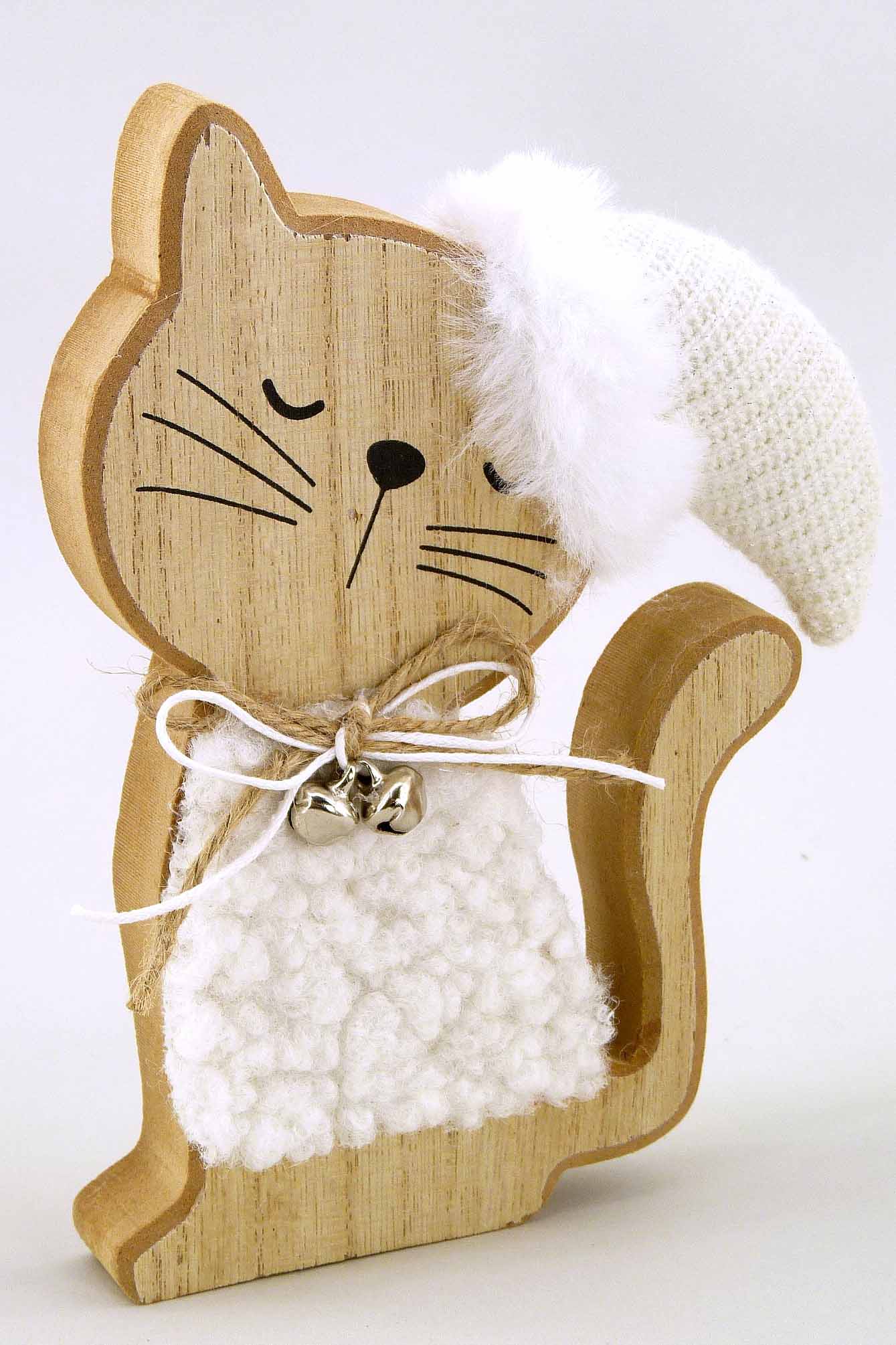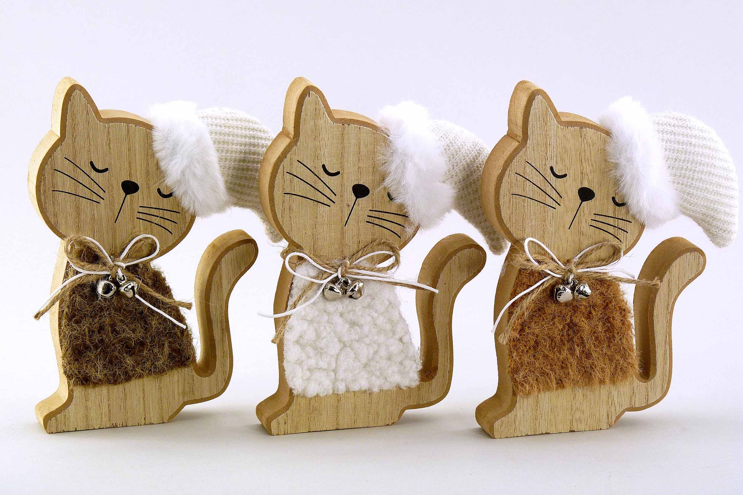 Holz/Stoff-Katze grau/weiß/braun-natur sort. H16,5 B12cm