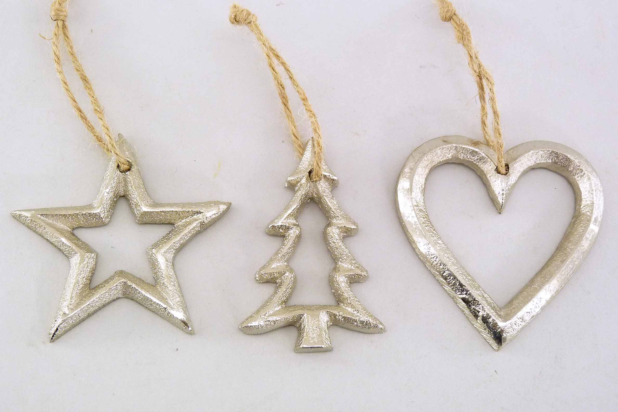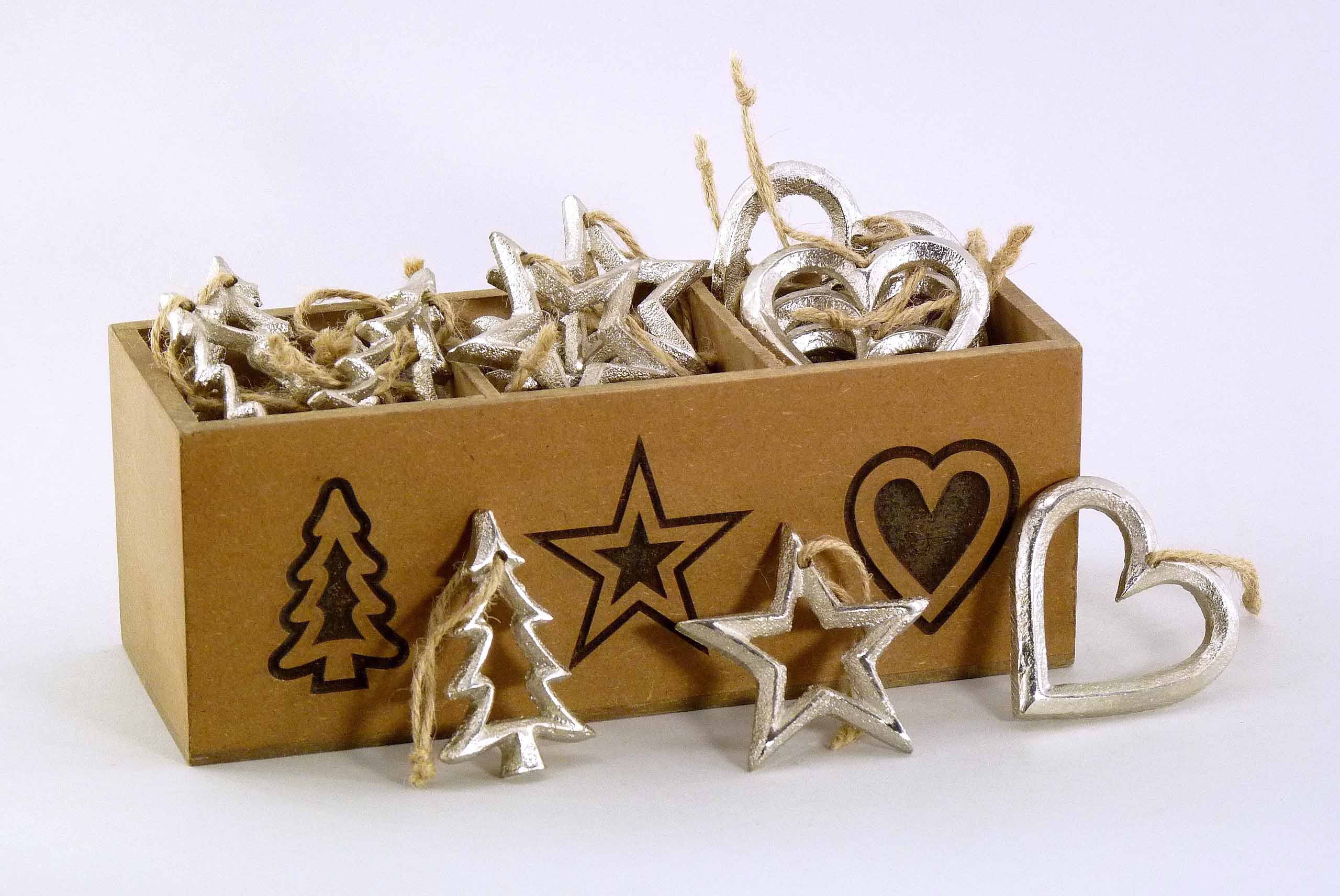 Alu-Stern/Herz/Baum Box/36 hgd. silber ø6cm
