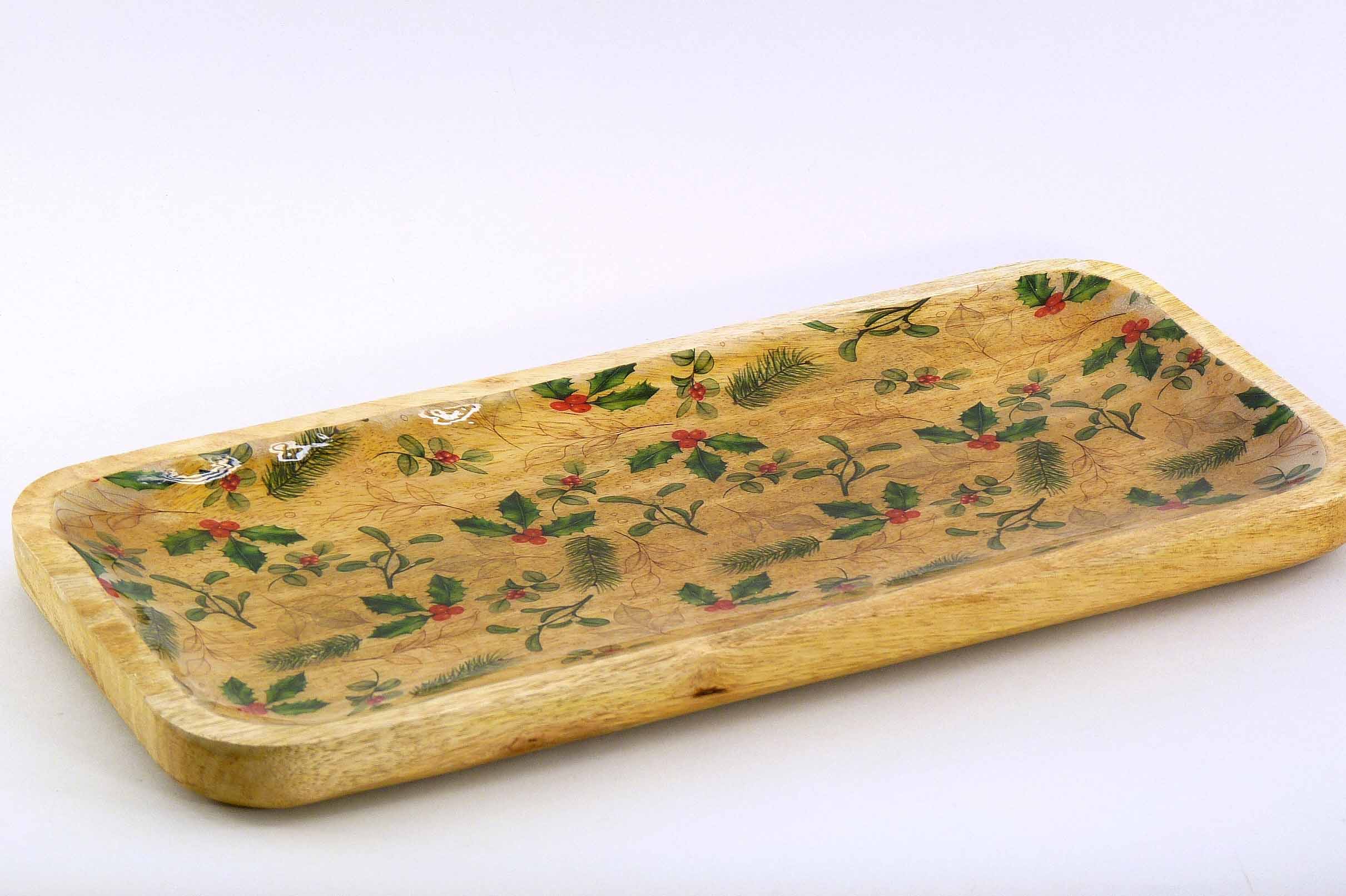 Mangoholz-Teller ''Reisig-Dekor'' natur-grün 38x18cm