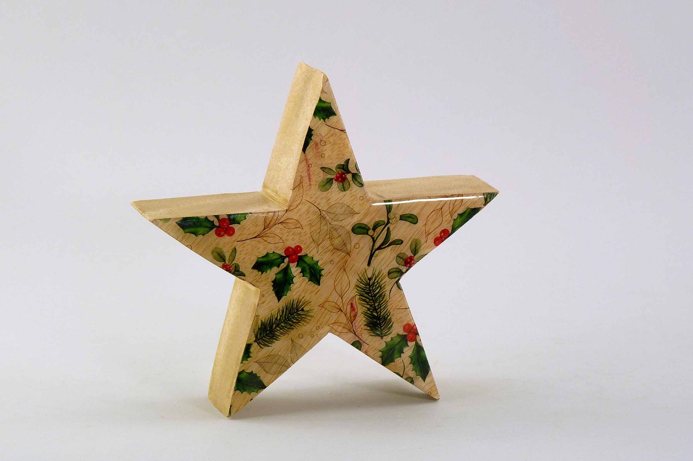 Mangoholz-Stern ''Reisig-Dekor'' natur-grün ø/H15,5 T4cm