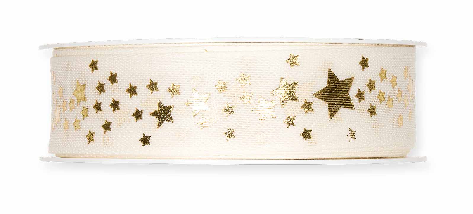 1405-025-70-18 Druckband ''Sternchen'' creme-gold 18m