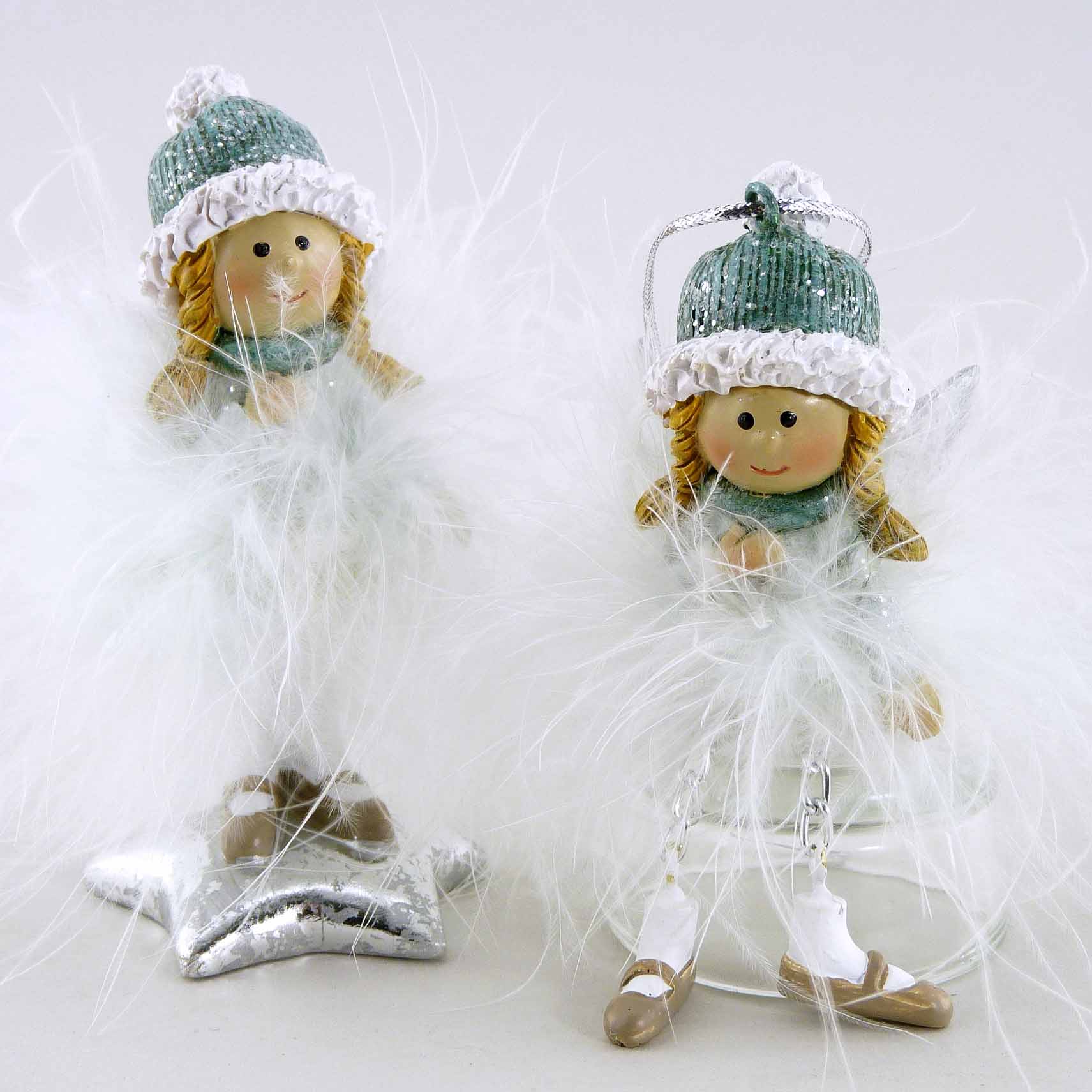 Poly/Feder-Engel hgd. mint-grün-silber sort. H11cm